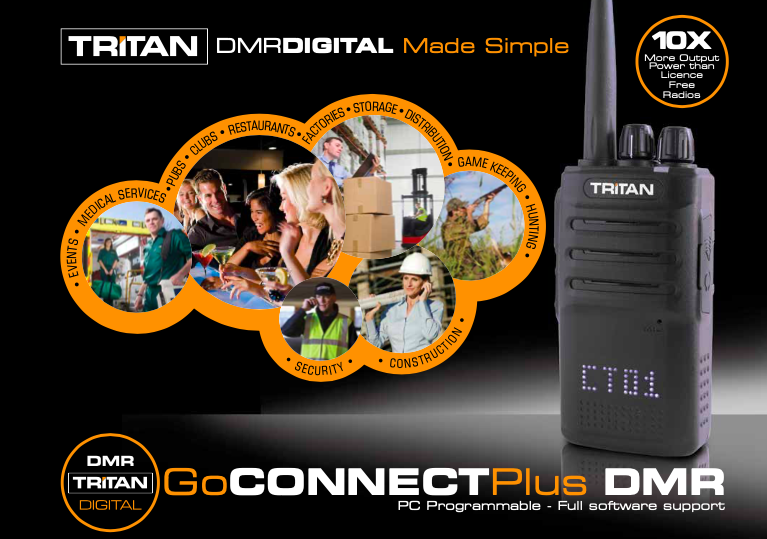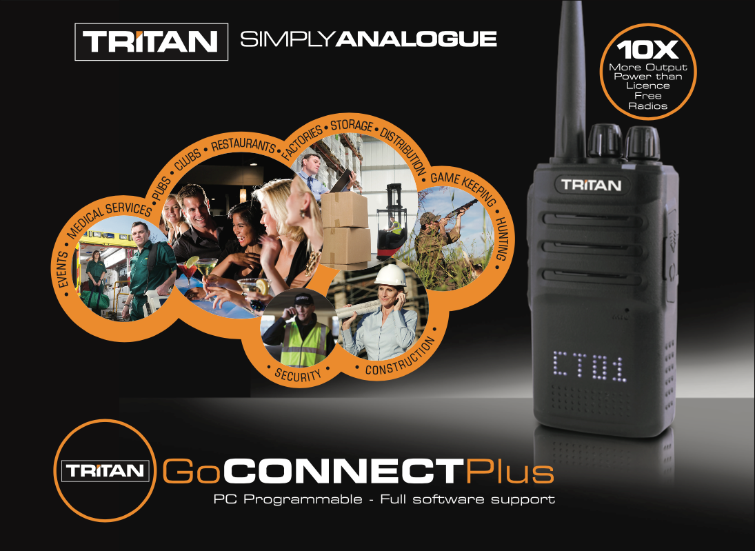 The Tritan GoConnect Plus is a robust and compact radio with an ergonomic design. This is suitable for a wide range of environments such as warehousing, manufacturing, print, photography shoots ect.